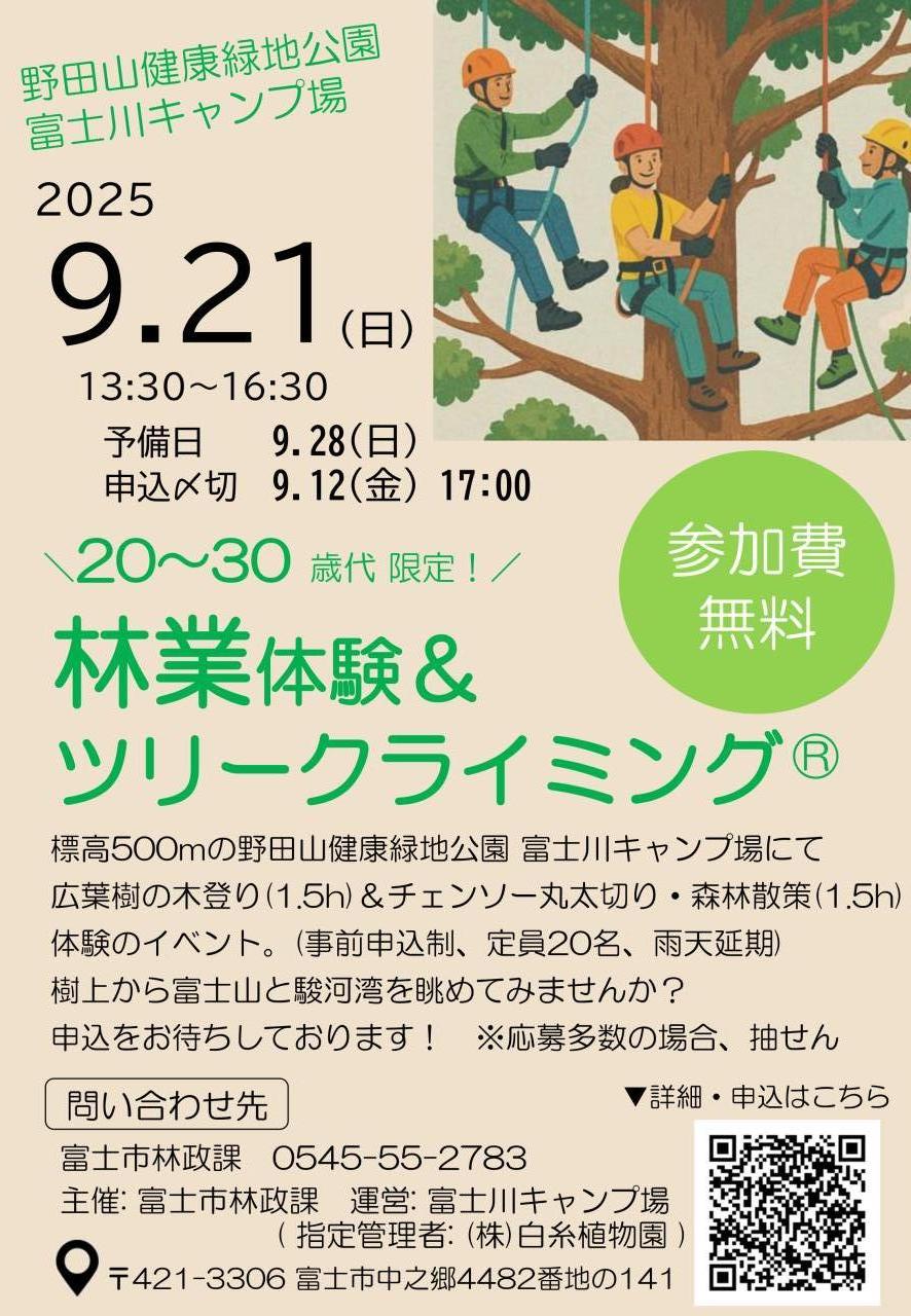 【初開催!】9/21(日)ツリークライミング®&林業体験イベント申込受付中